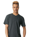 American Apparel Adult 4.6 Ounce CVC Henley T-Shirt. 4.6Oz, 60% Combed Ring Spun Cotton, 40% Recycled Polyester. Subtle heather appearance on all colors except Black and White. Taped neck and shoulders for comfort and durability. Slim placket with dyed to match buttons. Relaxed fit, side seamed body. Recycled tear away label.